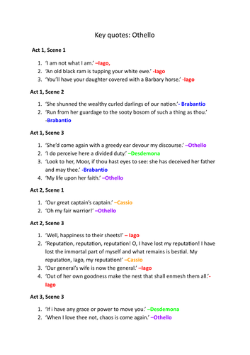 Othello By William Shakespeare Notes Quotes And Analysis By T Scar